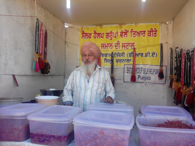 Amar Singh (55) of Khudi Kalan village in Barnala, who has a stall of pickles at the exhibition, is more than happy with the response.