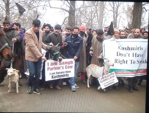 “I am Sangh Parivar’s cow, I am more secure than Kashmiris,” read the banner in the neck of the horse.