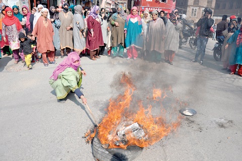 People at Kralpora also staged protest demonstrations with similar grievance and demand. The protestors said: “The five kg rice allocation will no way suffice to the needs.”