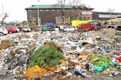 Heaps of garbage is littered on the streets of summer capital due to standoff between the residents of Achan and Srinagar Municipal Corporation (SMC) over dumping of garbage of the city there.