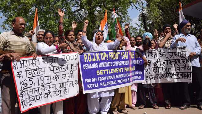 Led by president Rachpal Singh Chib, protesters claimed that then Prime Minister Atal Behari Vajpayee had sanctioned a financial package of Rs 112 crore in 2000 for the rehabilitation of the refugees from Mirpur, Bhimber, Kotli, Deva, Watala, Chamb, Nah, Manawar and Muzaffarbad after 1947, but the package has not been fully implemented till now.