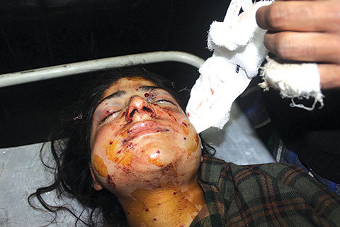In the Trauma Theatre of SMHS Hospital, 13-year-old Ifrah Jan from Rohmoo in Pulwama is in excruciating pain and horror. Her both eyes have been hit by pellets by security forces today, her face and neck are dotted with pellet wounds causing swelling, quite reminiscent of the face of 14-year old Insha Manzoor of Shopian, who lost both her eyes to pellet injuries in July this year.