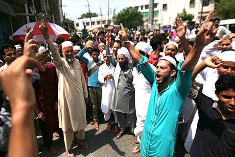 The protesters demanded stern action against the miscreants who shouted provocative slogans calling Muslims to come and fight them. They also sought security in minority areas.