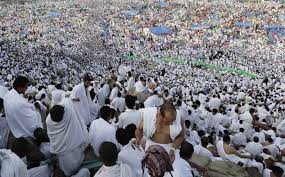 Forming a sea of white, the pilgrims ascended the hill and took up positions to pray on rocks already heated by the morning sun.