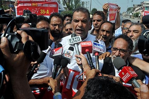“It is a well thought plot to first question the validity of this Article so that it is abrogated. By making changes to the special status the government will be playing with fire as situation can flare up and we can have quite a grim scenario,” Bhat said. Traders representing Shaher-e-Khaas Traders and Manufacturers Co-ordination Committee held a sit-in protest at Alamgari Bazar to protest against ‘attack on special status of the state’. Chairman, Shahr-e-Khaas Traders and Manufacturers Co-ordination Committee, Nazir Ahmad Shah said it is the duty of every Kashmiri to safeguard Article 35-A.