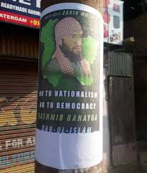Posters of Zakir Musa, head of newly created militant group Ansar Ghazwat-ul-Hind surfaced at Watergam area of Rafiabad in district Baramulla on Tuesday morning. Eyewitnesses told Kashmir Post that posters of Zakir Musa were seen pasted on electricity poles and walls in the main market of Watergam, Rafiabad. The posters with a photograph of Zakir Musa denounces nationalism, democracy and calls for Khilafah. “No to Nationalism”, “No to Democracy” and “Kashmir Banayga Dar ul Islam”, “Musa Musa Zakir Musa”, read the posters. Eyewitnesses informed Kashmir Post that later on, a…