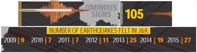 • Ominous Signs: From 7 tremors in 2010, the number of earthquakes felt in the State reached 27 in 2015 • 105 minor and major tremors have jolted J&K since 2009 The graph of earthquakes hitting Jammu and Kashmir has reached all time high with 27 tremors felt in the state last year. As per the official data, 105 minor and major tremors have jolted the state since 2009. The threat of earthquake looms large in the state, particularly in the areas coming under Seismic Zone V. As per the…