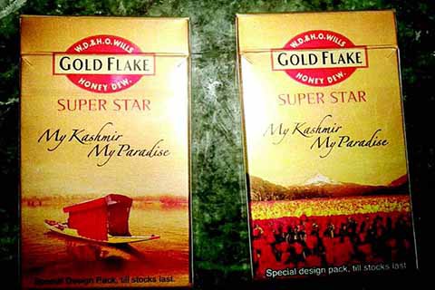 Gold Flake, an ITC cigarette brand, is using pictures of Kashmir’s locales and Shikaras in famed Dal Lake on its cigarette packets to boost sales. The move has fumed stakeholders here who seek action against the company. The new packing of Gold Flake is being marketed with theme “My Kashmir My Paradise” showing Shikara in Dal lake and pictures of Tulip garden on the outer covering. The move by the company has left stakeholders here fuming who demand legal action against the makers of the cigarette brand for abusing Kashmir…