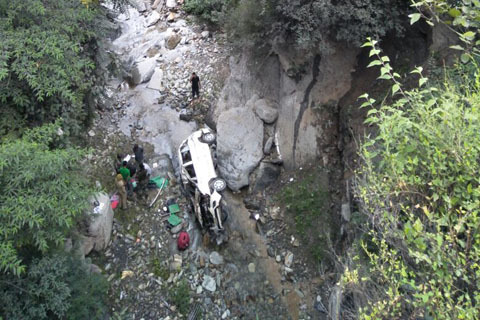Massive clashes erupt in Anantnag, Passenger cab rolls down from bridge in Banihal 7 persons injured
