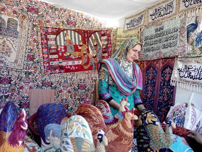 Jameela Majid, 35, from the militant bastion village of Takiya Niloora, Pulwama, south Kashmir, feels empowered as her art is getting a lot of praise and attention at the 10th regional SARAS exhibition in the heart of Srinagar. After passing her middle school exams, Jameela followed her mother’s footsteps and started making handmade curtains and cushions covers. “We had nothing as we suffered a lot economically due to the conflict. We were poor as for our family it was really difficult to afford two square meals a day, but today…